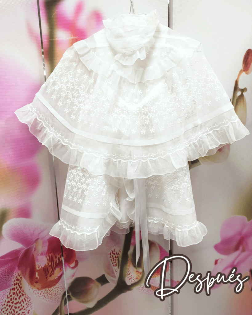 Se trata de un vestido de bautizo con más de 56 años de vida. Un pequeño tesoro que ha acompañado a varias generaciones, tejido entre risas familiares, fotografías en blanco y negro, manos temblorosas de emoción y nuevas bienvenidas al mundo.